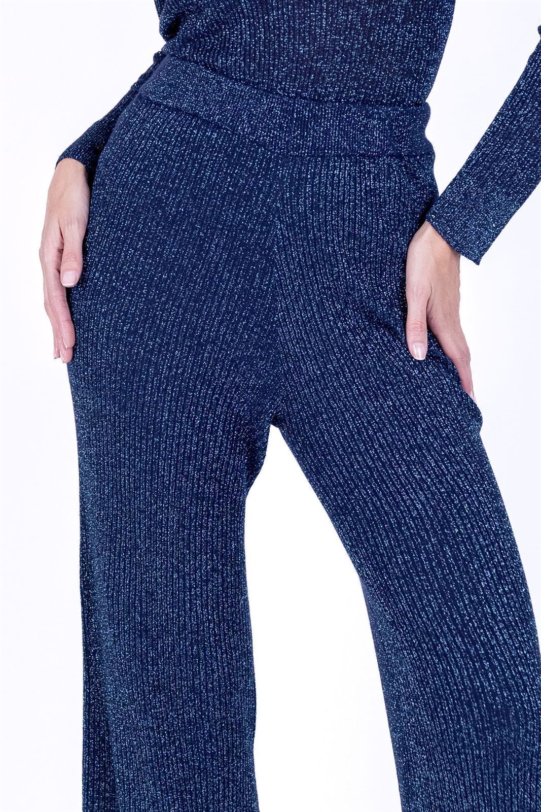 Precio, información, características e imágenes de Pantalón brillo azul, Miriam pertenece a la categoría Pantalones y faldas outlet (53) y a la marca LyLu (54).